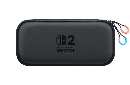 包含「Nintendo Switch 2」主機專用的便攜包、保護螢幕以防受損或髒污的保護貼及拭去螢幕污垢的清潔布的組合。內部的收納空間設有分隔層,可放6張遊戲卡及2條「Joy-Con腕帶」。